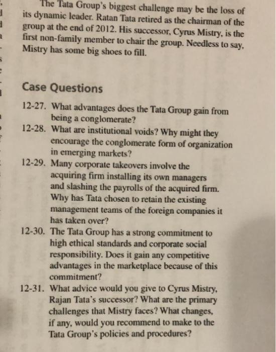 Solved The Tata Group S Biggest Challenge May Be The Loss Of Chegg Com